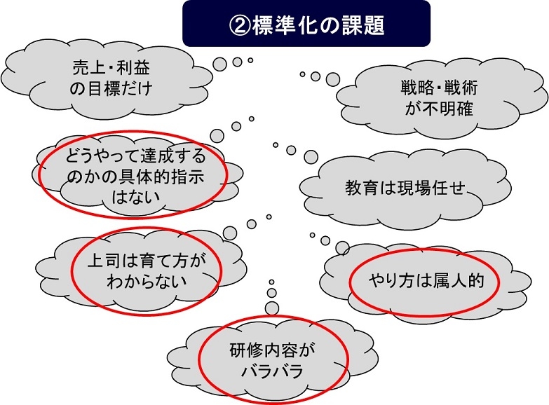 ✖ 結果的に、抽象論・精神論・個人的な思い・好き嫌いで情緒的に教えるというパターンに陥りがちです。教育というと若手や中途のことを考えがちですが、実はマネージャー教育が一番の問題なのです。