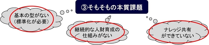 ✖ 「仕事のやり方は属人的で、やるべきことが標準化されていない」ということが、そもそも解決しなければならない本質課題です。